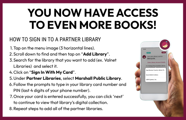 We have partnered with the Idaho Digital Consortium for this service, so remember to select the Idaho Digital Consortium as your home library followed by Marshall Public Library as the branch.