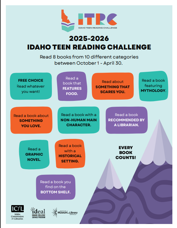 - Idaho Teen Reading Challenge ending! April 20, 2026